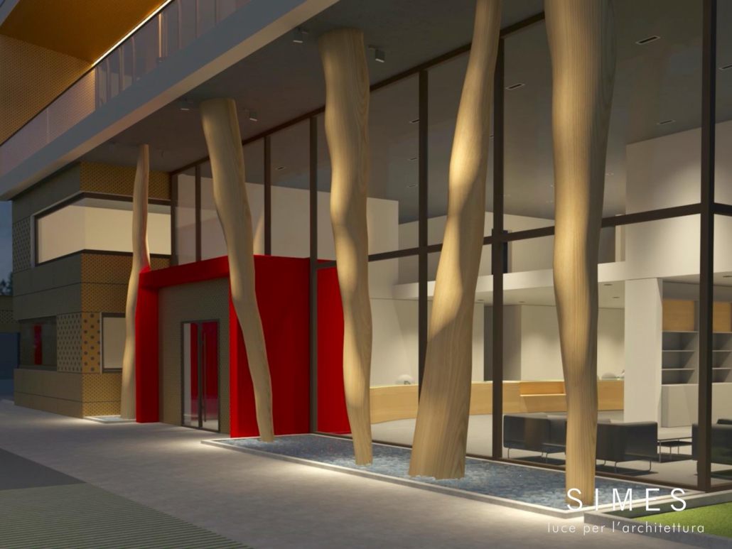 A new three-storey administration building is to be built on the premises of Schamel Horseradish in Baiersdorf. As part of the new construction, central functions in the existing plant are renewed and converted to the current standard in accordance with IFS Food (International Featured Standards Food). In addition, a new picking hall will be built. The open-air and transport facilities will be adapted and redesigned for plant development. The Johann-Jakob-Schamel-Platz becomes an integral part of this transformation. The new administration building is connected to the existing building via a bridge. A special feature is the spacious foyer, which also includes an interactive exhibition on the history of the company and the technologies used for the production of horseradish throughout the last 100 years. The Corporate Identity of the building is thematically characterized by the elements sun, water and earth, which are abstractly reflected in the chosen materials. Three striking conical concrete columns made of UHPC concrete (ultra-high-performance concrete) with a wooden mantle in the form of horseradish roots mark the new entrance.
